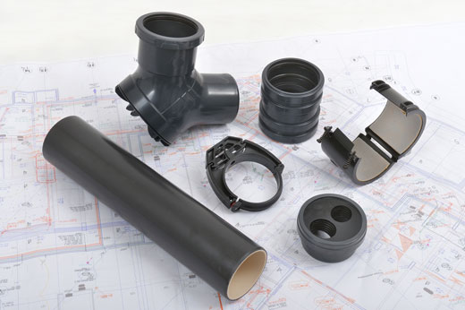 2 - aux changements de direction et dévoiements grâce au nouveau coude acoustique doté d’une membrane élastomère qui amortit le bruit d’impact des eaux. Disposant d’un grand rayon de courbure, ce pied de chute facilite l’écoulement et son bouchon simplifie les opérations d’entretien,